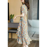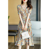 Feminine Looks Slim And Wears A French Floral Dress