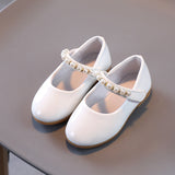 Girls' Leather Shoes Pearl Buckle Soft Bottom