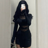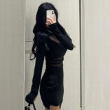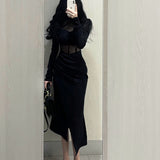 New Women's Clothing Adult Lady Like Woman Wind Black Fishbone Long Sleeve Dress