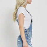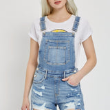 The distressed raw hem denim overalls are a casual yet trendy wardrobe staple that adds a touch of edgy flair to your look. Featuring a distressed finish and raw hem detailing, these overalls offer a cool and laid-back vibe that is perfect for everyday wear. The denim fabric provides durability and a classic aesthetic, while the distressed accents give off a fashion-forward appeal. With adjustable straps and multiple pockets, these overalls are both functional and stylish. Whether paired with a simple tee or a stylish blouse, these overalls can be dressed up or down for various occasions. Embrace a relaxed and chic style with the distressed raw hem denim overalls for a fashion statement that stands out.