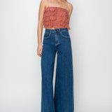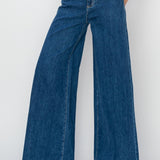 High rise palazzo jeans offer a unique and fashion-forward take on denim with their wide-legged silhouette and high-waisted fit. These jeans provide a modern twist on the classic palazzo pants style, combining comfort and elegance for a versatile wardrobe piece. The high rise waistline accentuates the waist and elongates the legs, creating a flattering and elongated look. Perfect for creating a chic and sophisticated outfit, these jeans can be styled with a variety of tops for different occasions. Whether dressed up with heels or worn casually with sneakers, high rise palazzo jeans are a stylish and versatile choice for adding a statement to your ensemble. Elevate your denim game with the high rise palazzo jeans to showcase your fashion-forward style and unique flair.