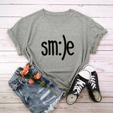 S-5XL Plus Size TShirt Women New Smile Letter Printed Shirt O Neck Short Sleeve Tees Summer Top 100%cotton Women's T-shirts